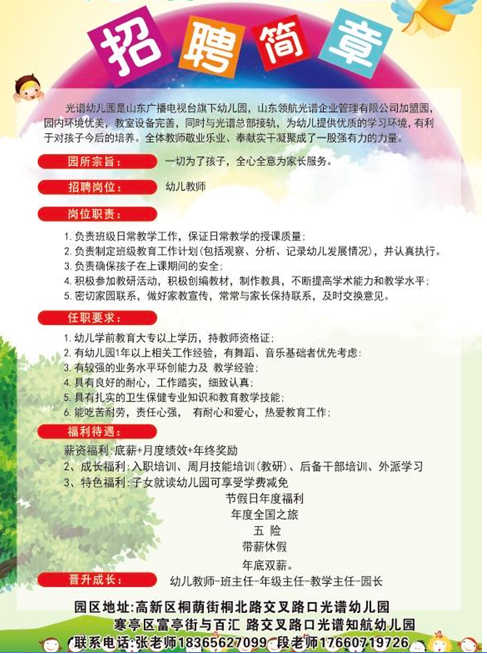 潍坊市高新区光谱幼儿园是山东广播电视台旗下幼儿园,是山东领航光谱企业管理有限公司的加盟园,(山东领航光谱企业管理有限公司是北京鲁视领航文化传媒股份有限公司子公司,山东广播电视台台属公司,山东省首家省属文化上市企业)。园所引进全球最先进的教育理念,挖掘幼儿最大潜能,引入最科学的原创案例,实现中国学前教育史上的革命性突破。创造最具特色的玩教具学习包,配备老师与家长的专业指导教具,制定最完整的幼儿评估体系,为每个孩子找到属于自己的起跑轨道。结合我国实际情况,研发出光谱幼儿园专属课程——《领航学习与发展课程》,并创建了光谱幼儿园连锁加盟体系。