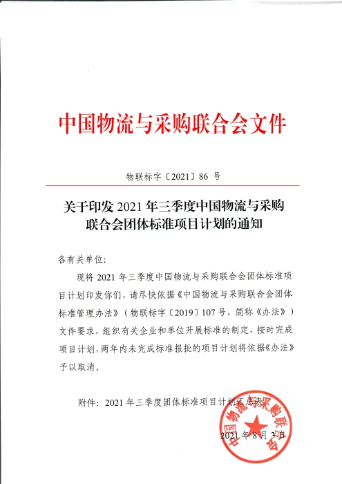 关于印发2021年三季度中国物流与采购联合会团体标准项目计划的通知