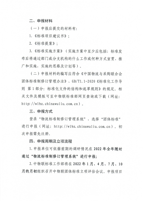 关于申报2022年中国物流与采购联合会团体标准项目的通知