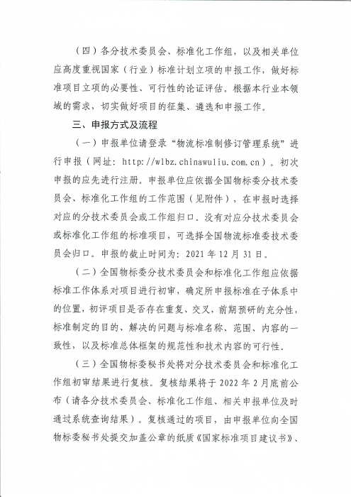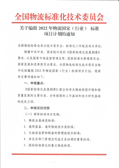 关于编报2022年物流国家(行业)标准项目计划的通知