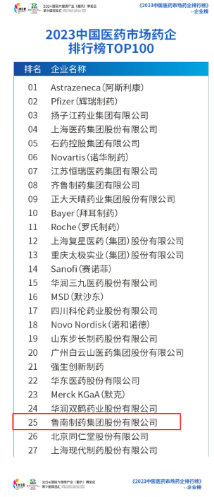 3月29日,由药智网、重庆中盟医药股份有限公司主办,药智传媒、重庆医药行业协会承办的“2024中国医药营销大数据峰会”召开,会上发布《2023中国医药市场药企排行榜》,潍坊市化工职教集团理事单位鲁南制药荣登2023中国医药市场药企排行榜TOP100,位列第25位,位列2023中国医药市场药企排行榜(化药)TOP100第35位、2023中国医药市场药企排行榜(中药)TOP100第14位。