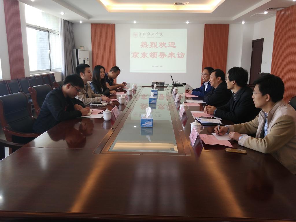座谈会上,校企双方就合作的具体事项进行了深入的交流洽谈,在组建订单班、京东校园实训中心项目、“我为我的家乡做代言”创业项目等方面达成了合作意向。