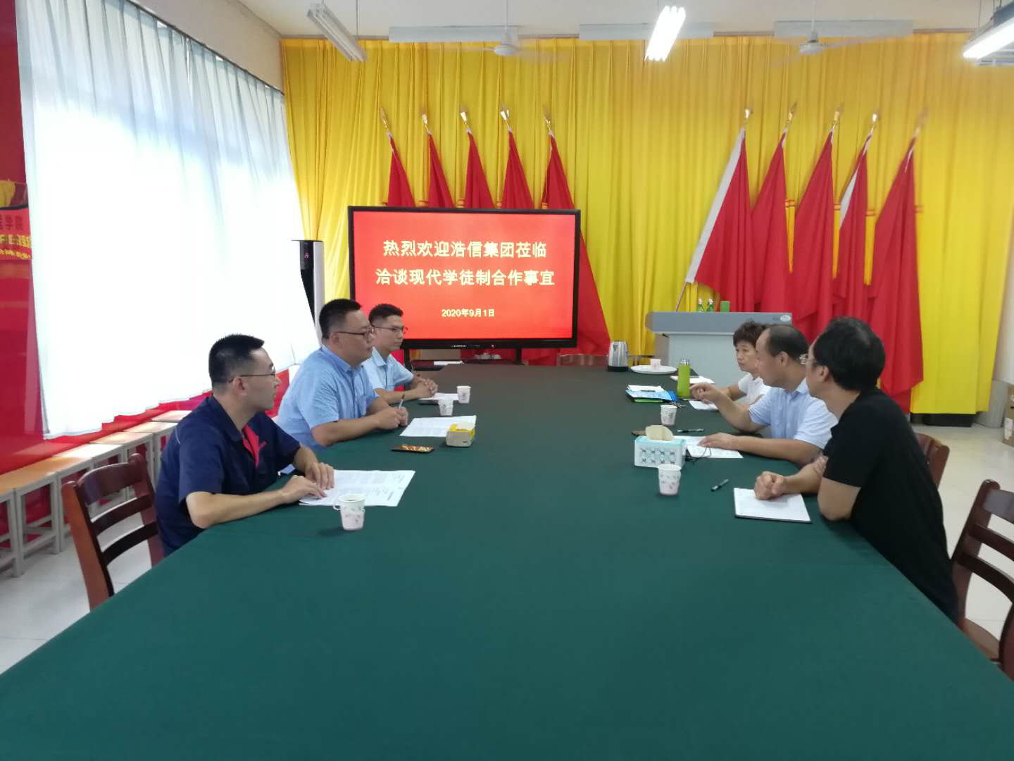 9月1日上午,山东浩信集团有限公司相关负责人一行3人到潍坊市机电设备职教集团理事单位洽谈现代学徒制合作事宜。潍坊职业学院机电工程学院负责同志、产学研合作办公室以及相关老师参加洽谈会。