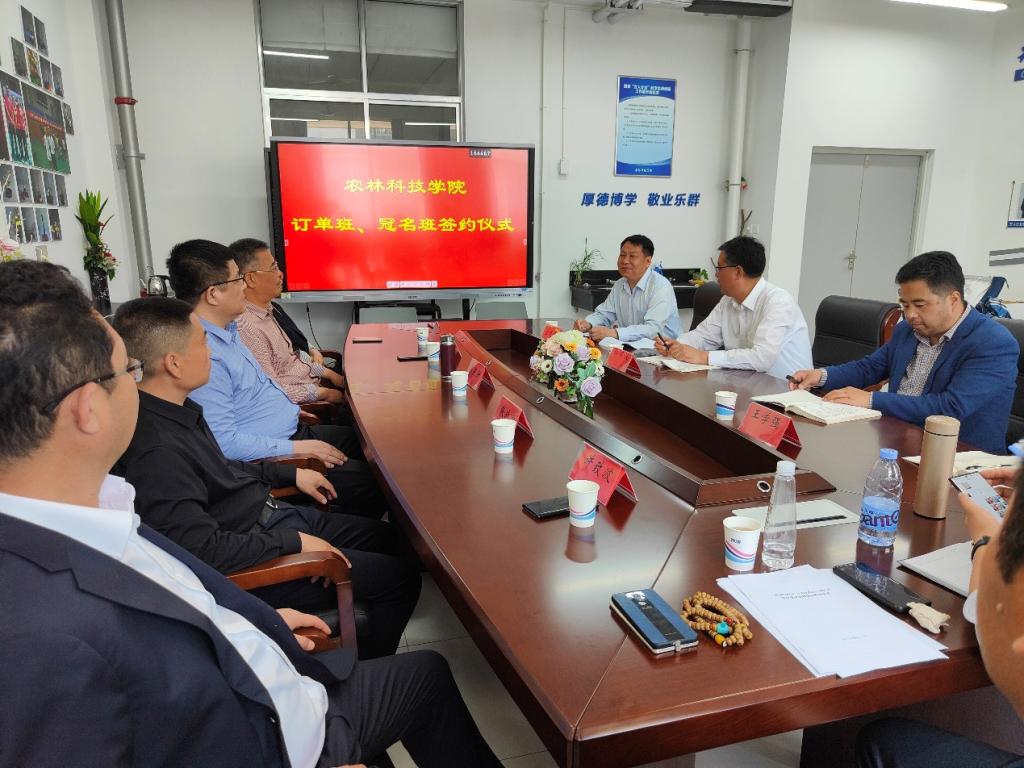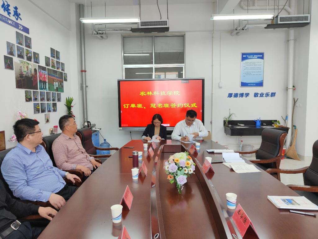 5月13日下午,山东省农林职教集团理事单位潍坊职业学院农林科技学院与山东润禧生物科技有限公司、山东省建设监理咨询有限公司、济南中建建筑设计院有限公司、青州市德农农资超市有限公司、东盛生态科技股份有限公司等五家公司进行“订单班、冠名班”签约。学院相关领导和教师代表以及各企业负责人参与此次会议。