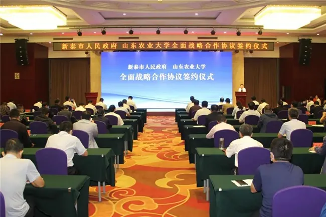 9月28日,山东省农林职教集团成员单位山东农业大学与新泰市人民政府签署全面合作框架协议。山东农业大学党委书记徐剑波、新泰市委书记刘钦海出席签约仪式并致辞,山东农业大学副校长李向东、新泰市人民政府市长宋鸿鹏分别代表双方在合作协议上签字。