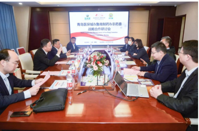 14日,鲁南制药集团与青岛医保城药品连锁有限公司举行战略合作会谈。鲁南制药集团党委书记、董事长、总经理张贵民和青岛医保城药品连锁有限公司董事长马守军参加会议。