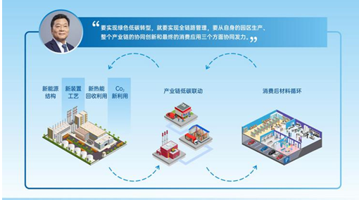 会上,寇总详细介绍了万华争做绿色低碳发展的时代先锋的新举措。“要实现绿色低碳转型, 就要加强全链路管理,从自身的园区生产、整个产业链的协同创新和最终的消费应用三个方面协同发力。首先在园区内做到四新:新能源结构、新装置工艺、新热能回收利用以及二氧化碳的新利用;同时以创新产品为基础,积极为上下游行业提供一体化解决方案,共同搭建循环低碳生态圈。”