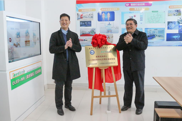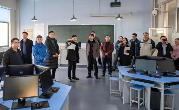 在实训室现场,相关二级学院主要负责同志和共建企业代表汇报了校企合作及进展情况、设备到位使用情况,演示了设备的操作使用;学院领导实地查看了实训室建设和设备运行情况,并与山东通达动漫科技有限公司代表共同为人工智能数字化应用标准实验室举行了揭牌仪式。经过严格有序的查验工作,顺利完成了各项目的验收工作。合作企业感谢学院对企业的支持,表示今后将加强交流合作,继续加大投入、完善相关教学设施设备、实现共赢。